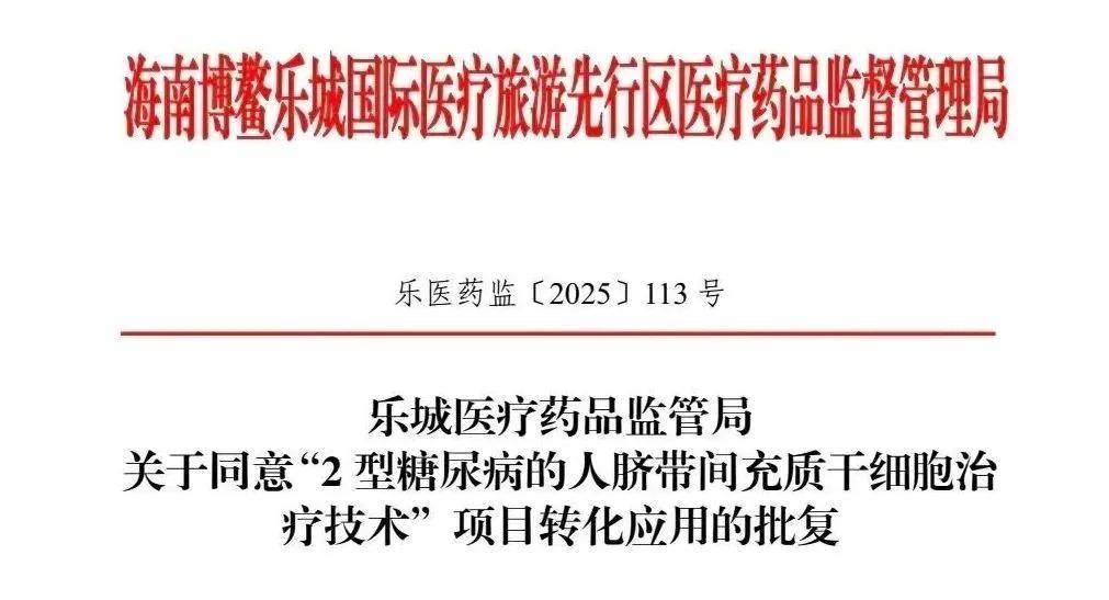 近日,博鳌乐城正式批准“2型糖尿病的人脐带间充质干细胞治疗技术”进入转化应用阶段。这标志着国内在血糖管理领域的干细胞治疗实现了从科研向临床的重要突破,也为血糖控制不佳的2型糖尿病患者提供了一种全新的治疗路径。