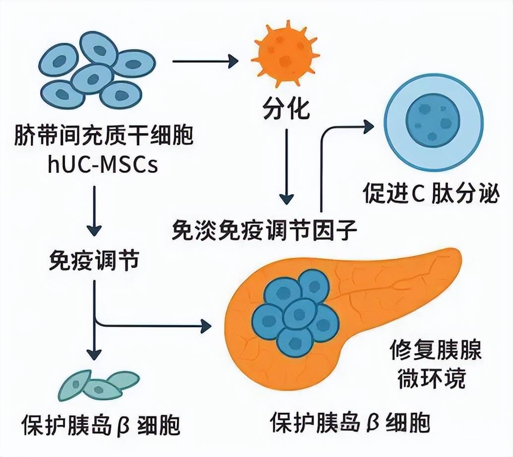 保护胰岛β细胞:分泌抗炎因子(如IL-1RA),逆转细胞去分化。