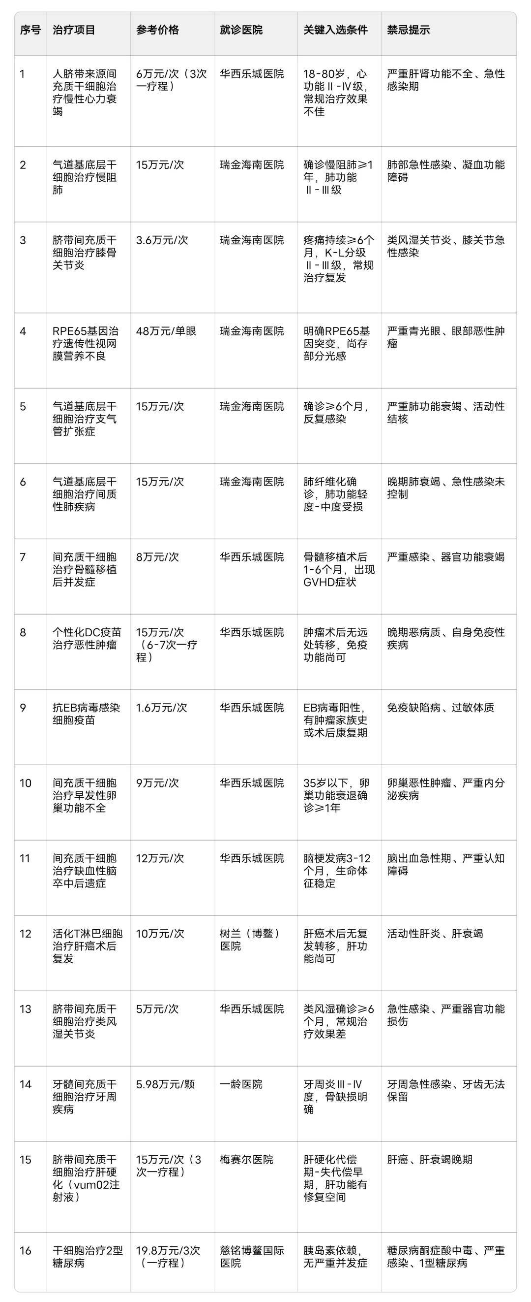 截至目前,博鳌乐城累计批复16项新生物技术治疗(含15项已公示+第16项糖尿病干细胞),覆盖肿瘤、慢性病、遗传病等疾病,具体治疗项目如下: