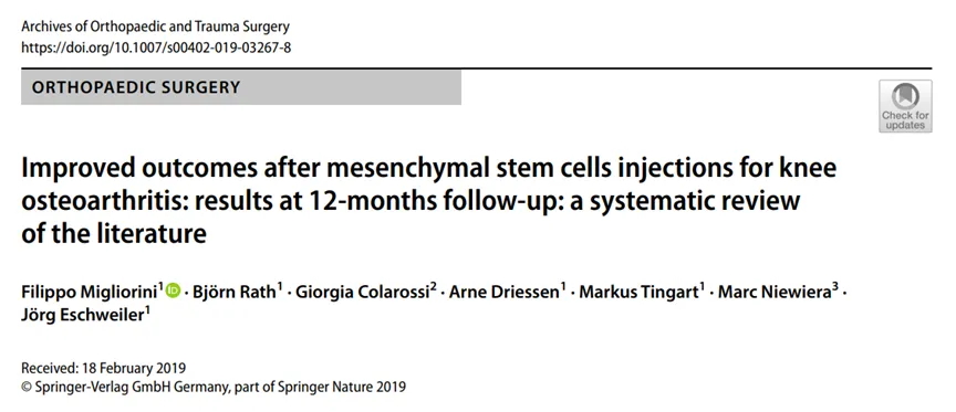 Archives of Orthopaedic and Trauma Surgery》的荟萃分析指出:早期退行性变阶段(OARSI评分≤3级)接受干细胞治疗,临床获益更大 化。